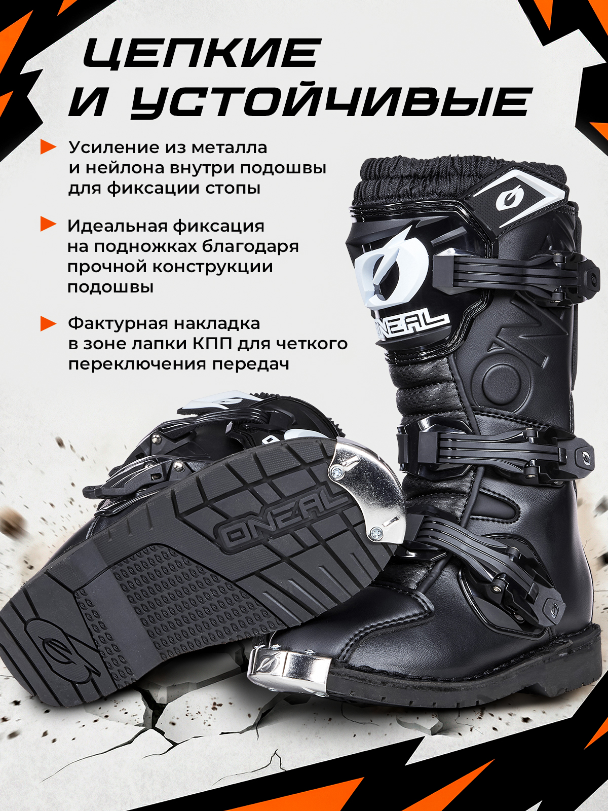 - Идеальная фиксация на подножках благодаря прочной конструкции подошвы