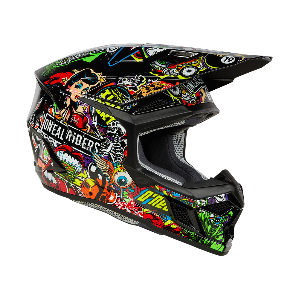 Мотошлем кроссовый O'NEAL 3Series Youth Crank - детский кроссовый шлем легкий, удобный, прочный и безопасный. Детский кроссовый шлем O'NEAL 3Series станет вашим надежным спутником во время любой гонки! Шлем для детей с 2 внешними оболочками и 2 размерами защитного слоя EPS для повышенной безопасности и идеальной посадки. Корпус изготовлен из высококачественного АБС-пластика. Оснащен системой аварийного снятия шлема E.Q.R.S. - легкое и быстрое снятие нащечной подушки за специальные язычки Множество вентиляционных отверстий на лицевой, лобной и затылочной частях, для оптимальной вентиляции и охлаждения. Совместимость с системой Airflaps - позволяет приподнимать ремешок маски на расстояние до 10 мм от шлема, тем самым способствуя свободной циркуляции воздуха под маской Для большей безопасности козырек крепится пластиковые винтом и двумя клипсами Застежка: двойное D-образное кольцо с простой регулировкой ремня для идеальной индивидуальной посадки и максимальной безопасности Пеноматериал предварительно сформированной формы, вырезанный лазером, для оптимальной посадки. Комфортная внутренняя подкладка, впитывающая пот, съемная и моющаяся. Очки надежно держаться на выступе в задней части корпуса шлема. Крепление для камеры GoPro® Mount доступно в качестве дополнительной запасной части. Готов к установке датчика безопасности Quin Smart Соответствует новому европейскому стандартам испытаний ECE 22.06 для повышения безопасности. Вес: 1170г ±50г Размерная сетка: M - 51-52см L - 53-54см